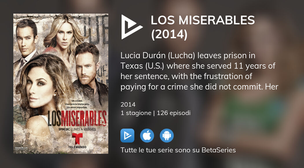 Les Misérables is a telenovela that premiered on Telemundo on September 30 2014 and concluded on March 24 2015. 2014 Episode 11 Rate Lucia gets out of jail. Los miserables 20142015 Plot Showing all 1 items Jump to.
